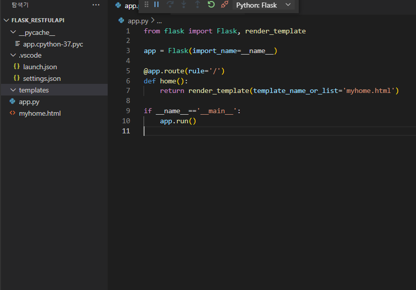 myhome.html 파일을 templates 디렉토리로 옮기기 문제가 해결 되었다.