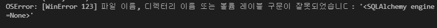 OSError: [WinError 123] 파일 이름, 디렉터리 이름 또는 볼륨 레이블 구문이 잘못되었습니다: '<SQLAlchemy engine=None>'