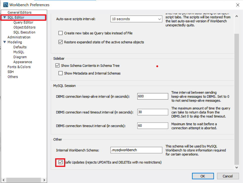 테이블에서 key값을 이용한 update나 delte만을 허용하도록 되어 있는데, 그렇게 않고 넓은 범위에 update 혹은 delete를 적용하려고 해서 발생하는 에러 라인이다.