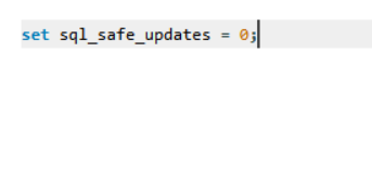 Error Code: 1175. You are using safe update mode and you tried to update a table without a WHERE that uses a KEY column. To disable safe mode, toggle the option in Preferences -> SQL Editor and reconnect.