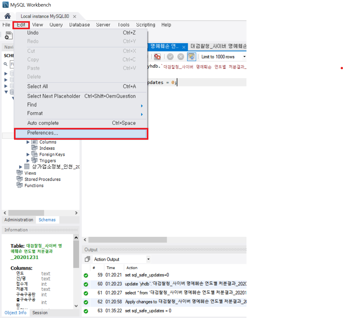 공공데이터 포털에서 다운로드 한 자료를 mysql 워크벤치에 임포트 하였다. 그리고 replace 문법을 통해서 필드의